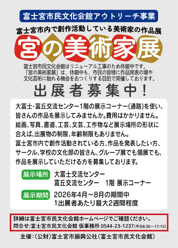 2026年4月~8月【市民文化会館アウトリーチ事業】宮の美術家展 出展者募集中!